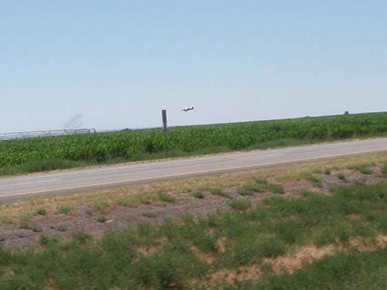 | Once clear of that interruption to the thought processes, I see a crop duster plying his trade. I have to admire their skills as pilots trying to get close enough to the crops to apply the necessary stuff and not too close to apply the plane to the ground. | ||